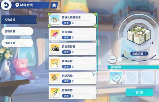 礼物的种类主要是按品质和角色偏好来分的,不同种类在涨好感的效果和获取难度上差别挺大,而且都和角色的设定能对应上,品质最明显的是蓝色和金色两种,蓝色品质的是基础款,适合游戏前期资源不够的时候用,随便送送就能提升角色的基础好感,日常做任务攒的材料就能合成,前期过渡很够用,金色品质的就是高阶礼物了,涨好感的效果比蓝色好很多,到了游戏中后期想快速提升核心角色的好感,基本都得靠它,不过金色礼物不好弄,除了开服的时候系统发邮件给过,或者限时节日活动能领,主要得靠神器许愿蛋在材料合成界面做出来,而且做出来的概率会随着星塔闯关层数的提高变高。
