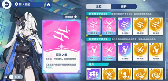 那么后期为她搭配深渊之痕的话,这个技能跟深渊连招搭配在一起,带来的就是伤害范围上面的叠加效果,最终的转换范围之内,目标会受到暗系类型的伤害,提升12%的数值,还有一点就是因为目前暗系队伍的主要输出效果都是来自于雾语,但是雾语目前在队伍里面其实是不太适合作为主攻角色使用的,所以珂塞特在这里的话,她潜能里面加上主控的强化优势,所以优先级上面也会带来更多暗系能力的效果,并且珂塞特在之前的实战里面就有很多玩家认为她的易伤倍率是很夸张的,但是现在的使用情况下,这个角色依然是能够利用这样的倍率提升自身的伤害的。