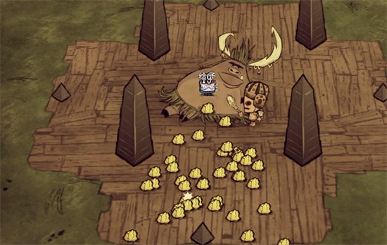 找到猪王后,很建议各位就在猪王附近建家,毕竟猪王不是boss类敌人,不会攻击玩家,往后自己想找猪王换金块时也会比较方便,还能让玩家们在前期轻松雇佣到数量众多的猪头人来帮自己采集资源。当猎犬来攻击自己时,甚至能将猎犬引到猪头人聚集地里,让猪头人帮自己打败它们,因此在猪王附近建家很有安全感。但要记得家园别太靠近猪头人房屋,避免它们在月圆之夜变异。