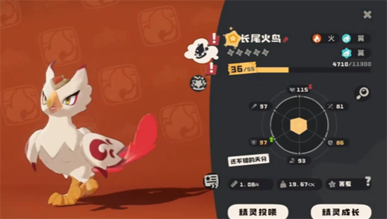 长尾火鸟的技能库有着很清晰的功能划分,而且很多技能都带有应对特定状态触发效果的设计,从初始阶段就掌握了啄击、抓挠这类基础攻击手段,还有火爪这样带火元素的技能,这些技能里不少都有连击特性,一次释放能打出多次伤害,有时候还能在攻击的同时悄悄攒下一些能量,或者给敌方宠物附上几层灼烧效果,到了后期解锁的翼系技能就更有针对性了,面对某些特定属性的宠物时,这些翼系技能能打出更可观的伤害。