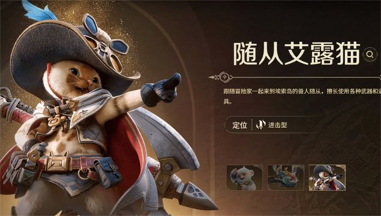 在游戏里是有宠物设定的,但在里面不叫宠物,而是随从系统,挑战开启之后,会有三种类型的宠物可以让玩家选择,每个宠物都会有不同的特性,玩家可以选择喜欢的成员一起搭档,这样也能提升整体的狩猎效率,每个宠物在游戏里的特性都会有所区别,玩家要挑选适合自己的,这样才能在战斗和冒险的时候,借助这些宠物带来一定的辅助作用,首先一个宠物就是艾露猫,这个宠物在对战的过程中,可以增强整个团队的输出能力,并且是非常经典的一个随从角色,在对战过程中,玩家可以利用这个角色,进行远距离或者近距离的辅助。