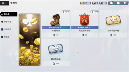 幻影气息在游戏内的作用也非常丰富,首先就是能够用来兑换一些行动力,提升自己的战斗水平,这样推进主线剧情的速度会更快一些。当剧情推进到第1章的第7节时,还将会解锁额外的副本挑战,这也是你前期获得经验最主要的方法之一。其次就是在商店中,你可以看到幻影气息是能够用来兑换金币的,一次能够兑换1万枚。由于大家在游戏前期都非常的缺金币,因此幻影气息也是帮助你获得金币最重要的方法。