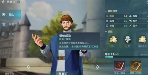贸易型航海士以商业技能为核心,擅长在各类港口交易中发挥作用,他们的能力覆盖商品购买、出售的全流程优化,部分还针对特定品类如酒类、香料等有专项加成,无论是降低采购成本、提高出售价格,还是提升议价成功率、获取交易退税等,都能为贸易航线带来实际收益,探险型航海士则是未知海域的开拓者,他们的技能聚焦长途航行的续航与探索效率,比如通过减少水粮消耗保障续航,借助博物学知识提高发现物获取概率,部分还具备解锁宝藏、采集资源时提升收益的专属能力。