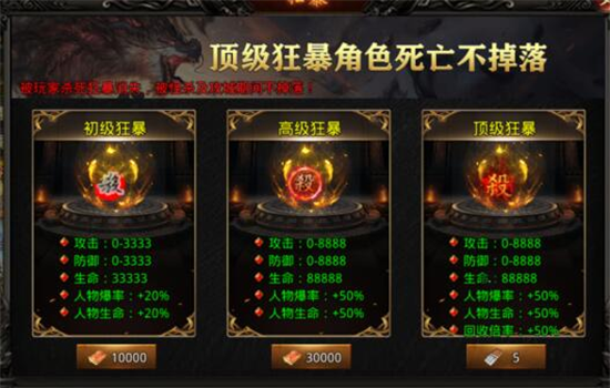 1、【狂暴之力】: 不是让你变红名!5米买永久顶级狂暴,回收效率+200%,打金党不买亏到哭