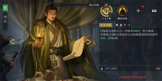 第二套是诸葛亮配庞统和法正。这是个纯蜀智的配置,野战强度挺高,集结表现稍微弱一点。主修兵法诸葛亮和庞统都选以法谋诛,法正带诱敌而击。辅修方面诸葛亮和庞统都用机动集智善谋,法正用奋主转守活气。这套阵容有个问题就是弓兵体系普遍缺减伤,续航比较难,所以需要玩家走位灵活一些才能打出效果。坚阵合一这个技能可以提供前期减伤,野战的时候如果操作得好能拉出很高的上限。辅国也可以带,能给主将增加伤害,不过这队本身伤害已经够了,所以不是特别必要。如果手里法正或者庞统只有一个,可以换成黄月英或者马良,但要是两个都需要换的话就不太推荐用这套了。