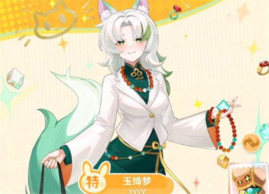 玉绮梦是26岁女性狐灵族人,身高168厘米,职业为珠宝设计师。她既是原创珠宝的主理人,又是直接面对顾客的销售者,因此具有较好的表达能力以及商业头脑。她对财富的执着不是单纯的贪财,而是出于家族使命的执着。她不断地敛财是为了找到永夜烘焙王莓瑰,重现昔日的辉煌永夜王城。把个人目标同世界观背景联系起来,使玉绮梦的形象特点同其他店员相比更加立体。