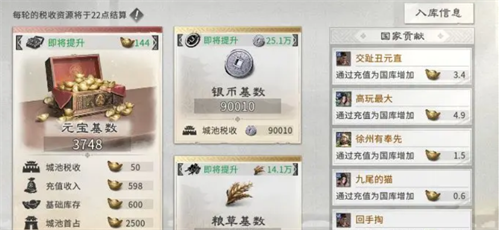 国战方面也能赚元宝。参加国战,工程建设这些活动,都会增加个人贡献度。贡献度高了就能拿到分红,分红里面就包含元宝。第一次加入同盟的时候也有元宝奖励,虽然只有一次,但也算是个小收入。