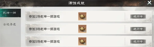 南蛮入侵这个玩法记得参加,每个时间段都去打的话,能拿到200元宝的奖励。酒馆每天会送筹码,用筹码去玩古迹巡遗,也能获得元宝。这个玩法的成就比较容易完成,玩几次就能熟悉规律了。