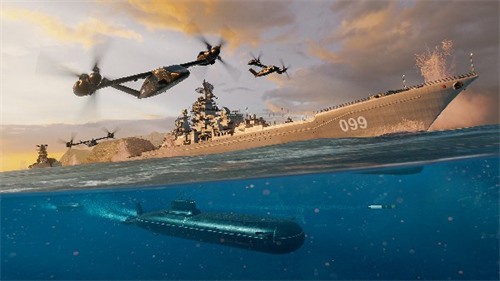 2、舰船、潜艇、飞机和直升机在一场战斗中;