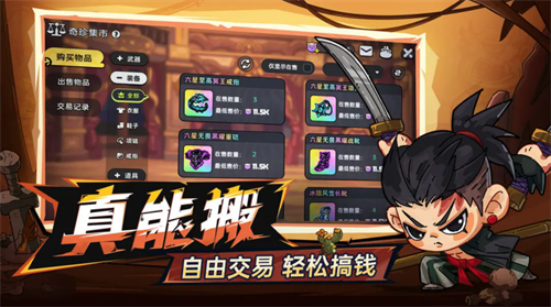 装备可回收,交易更自由。玩家可在交易行中自由上架装备与道具获取货币,同时也可以使用货币在交易行内购买装备、皮肤等各类道具。真正实现市场化经济,不花一分钱也可实现全皮肤。