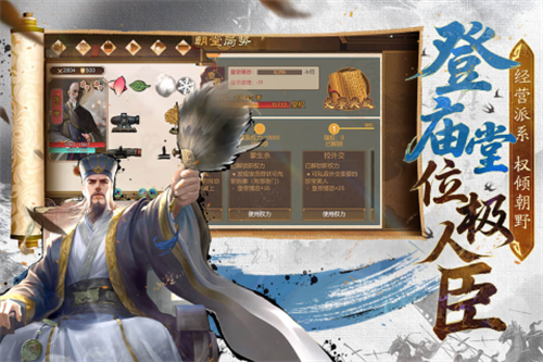 四大战斗系统重磅登场!千古帝王指点江山,武林侠客群雄纷争,官场权臣舌战群儒,戎马将军征战沙场,战火纷飞,策略为上!