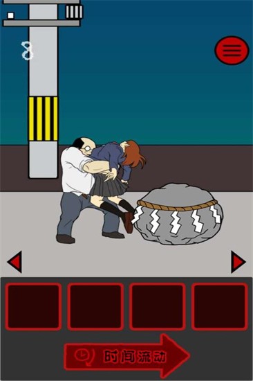 第一关:非常简单,妹妹你大胆的往前走,莫回头~等痴汉从电线杆出来后,把猪头放他前面让他吃就可以安全回家了。